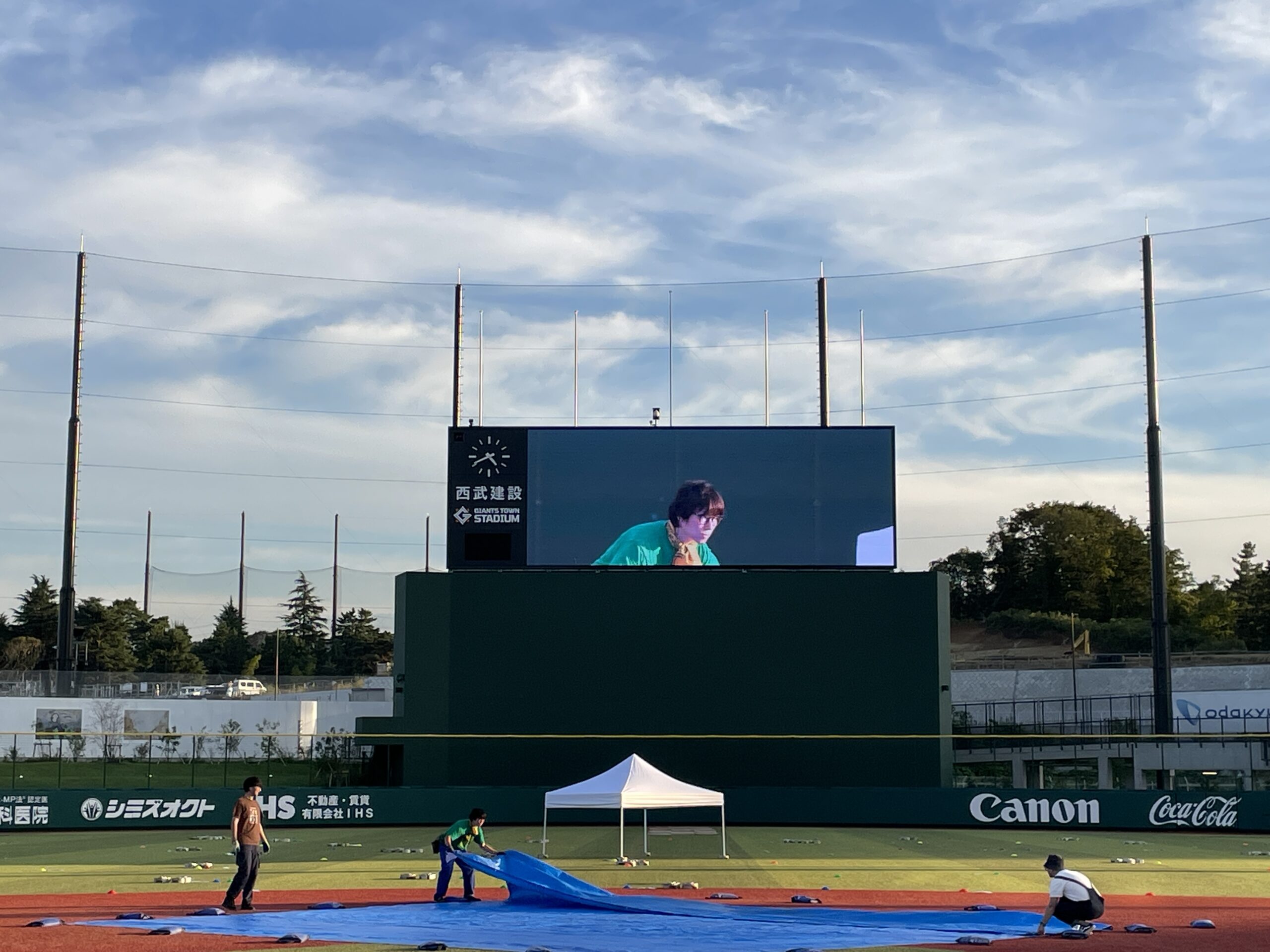 ※最後に、球場のスタジアムの大型ビジョンに映るコイケを添えて……。ちなみに、各日で開催するトークライブは、このビジョンに映し出して生中継しますよ!